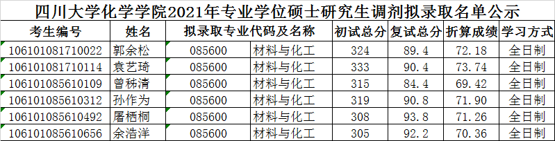 a漫 2021年专业学位硕士研究生调剂拟录取名单公示