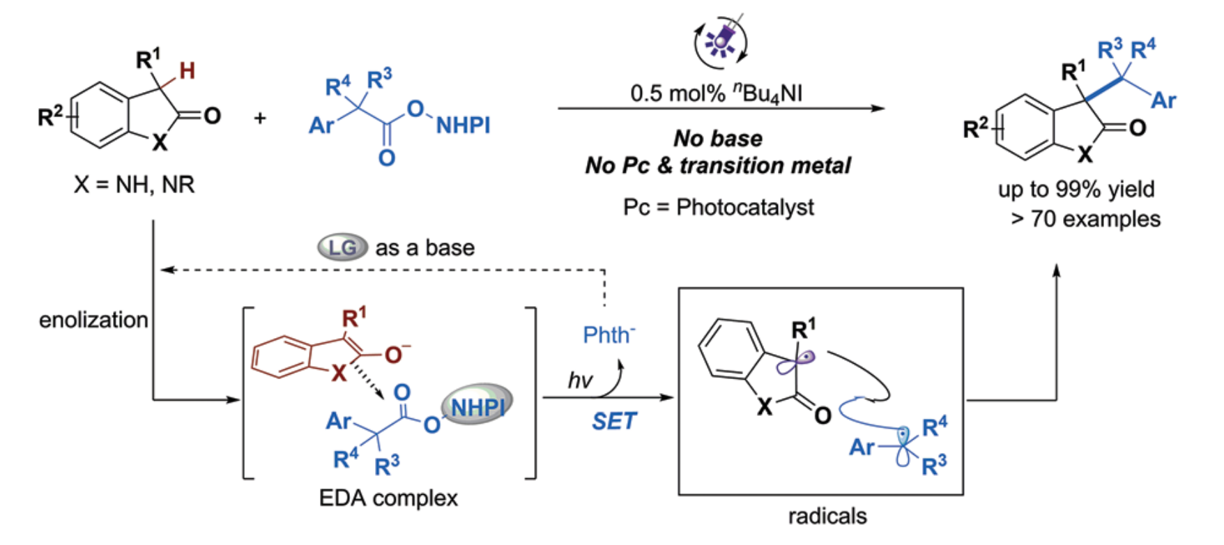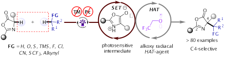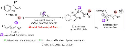 2. 发展小分子催化的高选择性、高效性的自由基(光化学或电化学)参与的不对称合成方法学