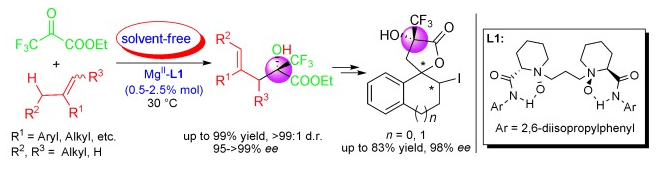 33.Ke Zheng, Yang Yang, Jiannan Zhao, Chengkai Yin, Lili Lin, Xiaohua Liu and Xiaoming Feng*. “Magnesium(II)-Catalyzed Asymmetric Ketone-Ene Reaction: Stereocontrolled Access to Enantioenriched Trifluoromethyl-Substituted Compounds” Chem. Eur. J. 2010, 16, 9969.