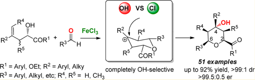 29.Ke Zheng, Xiaohua Liu, Song Qin, Mingsheng Xie, Lili Lin, Changwei Hu, and Xiaoming Feng* “Completely OH-Selective FeCl3 Catalyzed Prins Cyclization: Highly Stereoselective Synthesis of 4-OH-Tetrahydropyrans” J. Am. Chem. Soc. 2012, 134, 17564−17573.