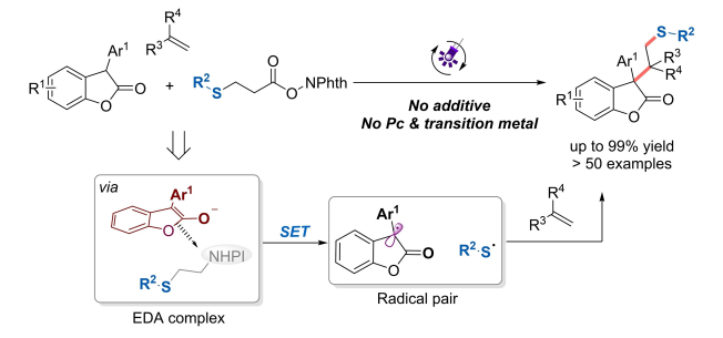 13.Dailin Xi, Cong Lu, Dong Jing, and Ke Zheng* “Carbothiolation of Styrenes by Visible-Light-Induced Thiyl Radicals: C3-Functionalization of Benzofuran-2(3H)-ones“ Eur. J. Org. Chem. 2022, e202200688