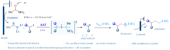 6.Xiang Sun, Ke Zheng* “Electrochemical halogen-atom transfer alkylation via α-aminoalkyl radical activation of alkyl iodides” Nat. Commun. 2023, 14, 6825.