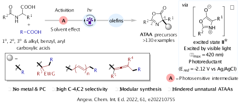 11.Yujun Li, Jie Yang, Xinxin Geng, Pan Tao, Yanling Shen, Zhishan Su, and Ke Zheng* “Modular Construction of Unnatural α-Tertiary Amino Acid Derivatives by Multicomponent Radical Cross-Couplings” Angew. Chem. Int. Ed. 2022, 61, e202210755