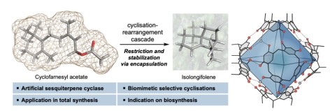 9) Zhang, Q.; Rinkel, J.; Goldfuß, B.; Dickschat, J. S.; Tiefenbacher, K.* “Sesquiterpene Cyclizations Catalysed inside the Supramolecular Resorcinarene Capsule and Application in the Short Synthesis of Isolongifolene and Isolongifolenone", Nat. Catal. 2018, 1, 609.