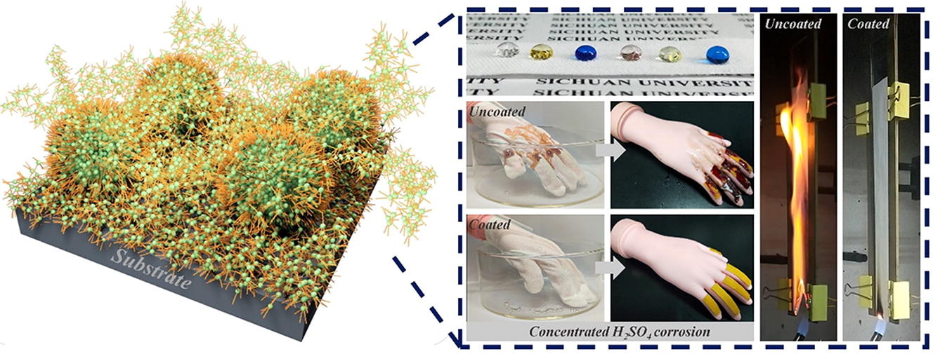 5.  Wang F, Li JY, Pi J, Song F*, Luo YQ, Wang XL, Wang YZ*. Superamphiphobic and flame-retardant coatings with highly chemical and mechanical robustness. Chem Eng J, 2021, 421, 127793 (ESI highly cited paper)