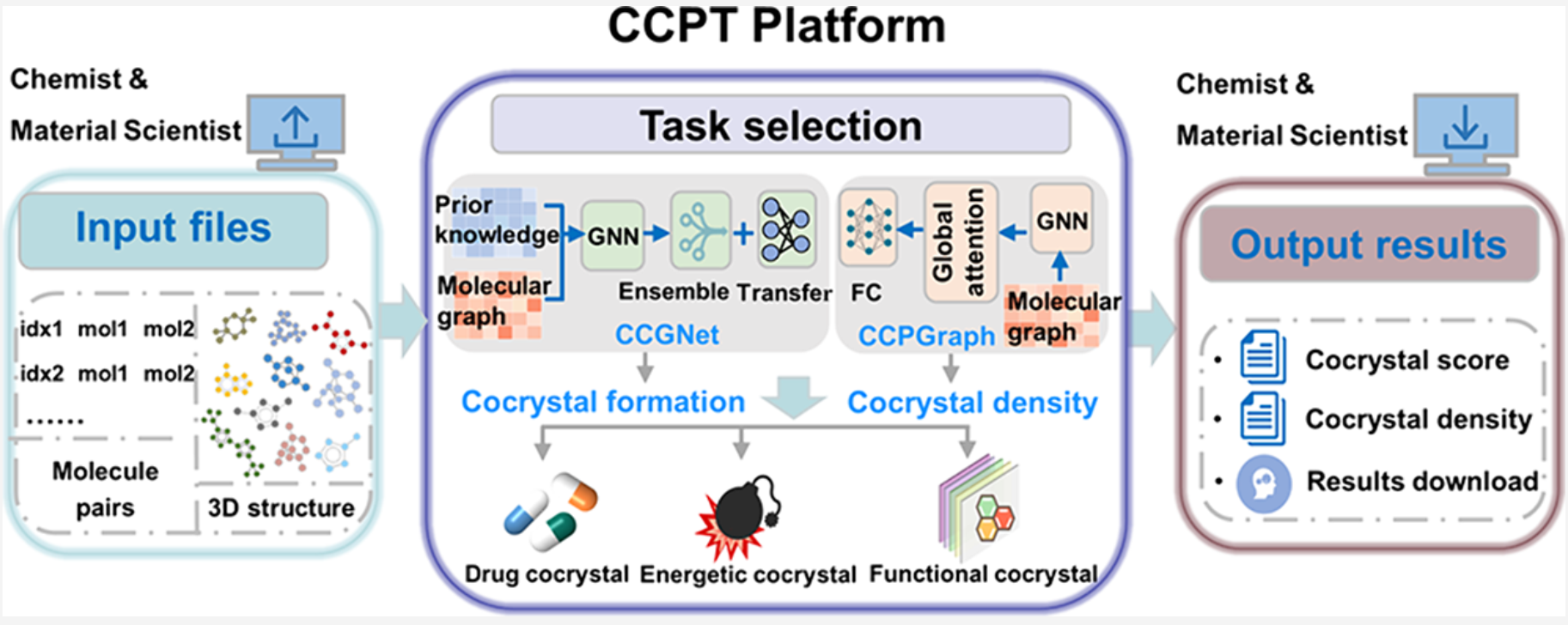 4. Jiali Guo, Songran Yang, Chenghui Wang, Jing Liu, Yanzhi Guo, Zongwei Yang, Xueyan Zhao, Xuemei Pu*, Cocrystal Prediction Tool (CCPT): A Web Server for Deep Learning Assisted Cocrystal Screening and Density Evaluation, Crystal Growth & Design, 2024, 24, 8407-8414.