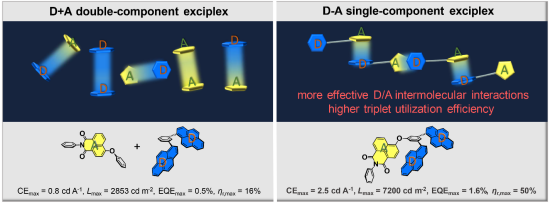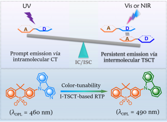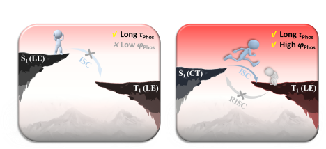 2. 提出了能兼具长寿命和高效率的纯有机室温磷光分子的理性构建策略