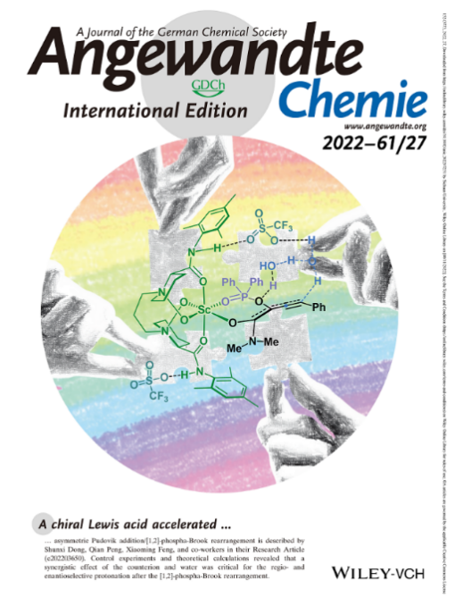 7.Lin, Q. C.; Zheng, S. J.; Chen, L.; Wu, J.; Li, Z. J.; Liu, P. Z.; Dong, S. X.*; Liu, X. H.; Peng, Q.*; Feng, X. M.* Catalytic Regio- and Enantioselective Protonation for the Synthesis of Chiral Allenes: Synergistic Effect of the Counterion and Water. Angew. Chem. Int. Ed. 2022, 61, e202203650 (封面论文).