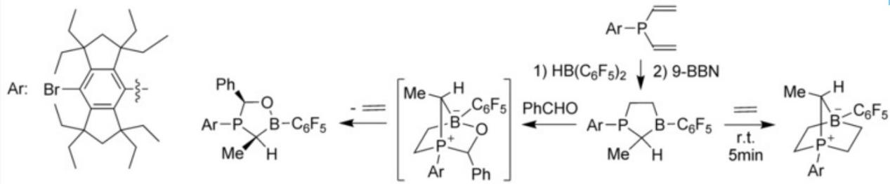 41.Dong, S. X.; Daniliuc, C. G.; Kehr, G.; Erker, G.* Formation of Active Cyclic Five-membered Frustrated Phosphane/Borane Lewis Pairs and their Cycloaddition Reactions. Chem. Eur. J. 2020, 26, 745.