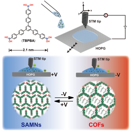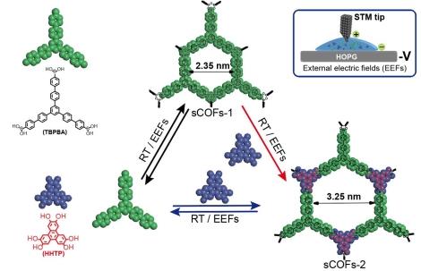 Zhen-Feng Cai†, Gaolei Zhan†*, Lakshya Daukiya, Samuel Eyley, Wim Thielemans, Kay Severin and Steven De Feyter*, Electric-Field-Mediated Reversible Transformation between Supramolecular Networks and Covalent Organic Frameworks. J. Am. Chem. Soc., 2019, 141, 11404. (Highlighted in Nature)