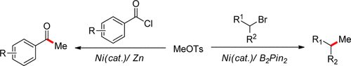 23. Z. Liang,‡ W. Xue,‡ K. Lin, H. Gong. Nickel-Catalyzed Reductive Reductive Methylation of Alkyl Halides and Acid Chlorides with Methyl p-Tosylate. Org. Lett. 2014, 16, 5620–5623.