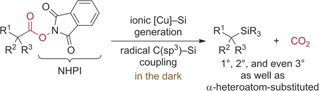 19. W. Xue, M. Oestreich. Copper-Catalyzed Decarboxylative Radical Silylation of Redox-Active Aliphatic Carboxylic Acid Derivatives. Angew. Chem. Int. Ed. 2017, 56, 11649–11652.