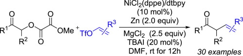 25. X. Tao, K. Yao,* W. Xue.* Ni-Catalyzed Cross-Electrophile Coupling of α-Hydroxy Carbonyl Compound-Derived Oxalates with Vinyl Triflates. Tetrahedron Lett. 2021, 73, 153129.