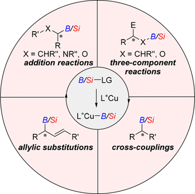 15. W. Xue, M. Oestreich. Beyond Carbon: Enantioselective and Enantiospecific Reactions with Catalytically Generated Boryl- and Silylcopper Intermediates. ACS Cent. Sci. 2020, 6, 1070–1081.