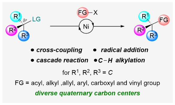 14. W. Xue,* X. Jia, X. Wang, X. Tao, Z. Yin, H. Gong*. Nickel-Catalyzed Formation of Quaternary Carbon Centers Using Tertiary Alkyl Electrophiles. Chem. Soc. Rev. 2021, 50, 4162–4184.