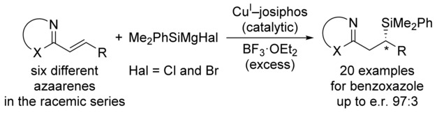 17. W. Mao,‡ W. Xue,‡ E. Irran, M. Oestreich. Copper-Catalyzed Regio- and Enantioselective Addition of Silicon Grignard Reagents to Alkenes Activated by Azaaryl Groups. Angew. Chem. Int. Ed. 2019, 58, 10723–10726. (Highlighted as Hot Paper; Synfacts 2019, 15, 1024).
