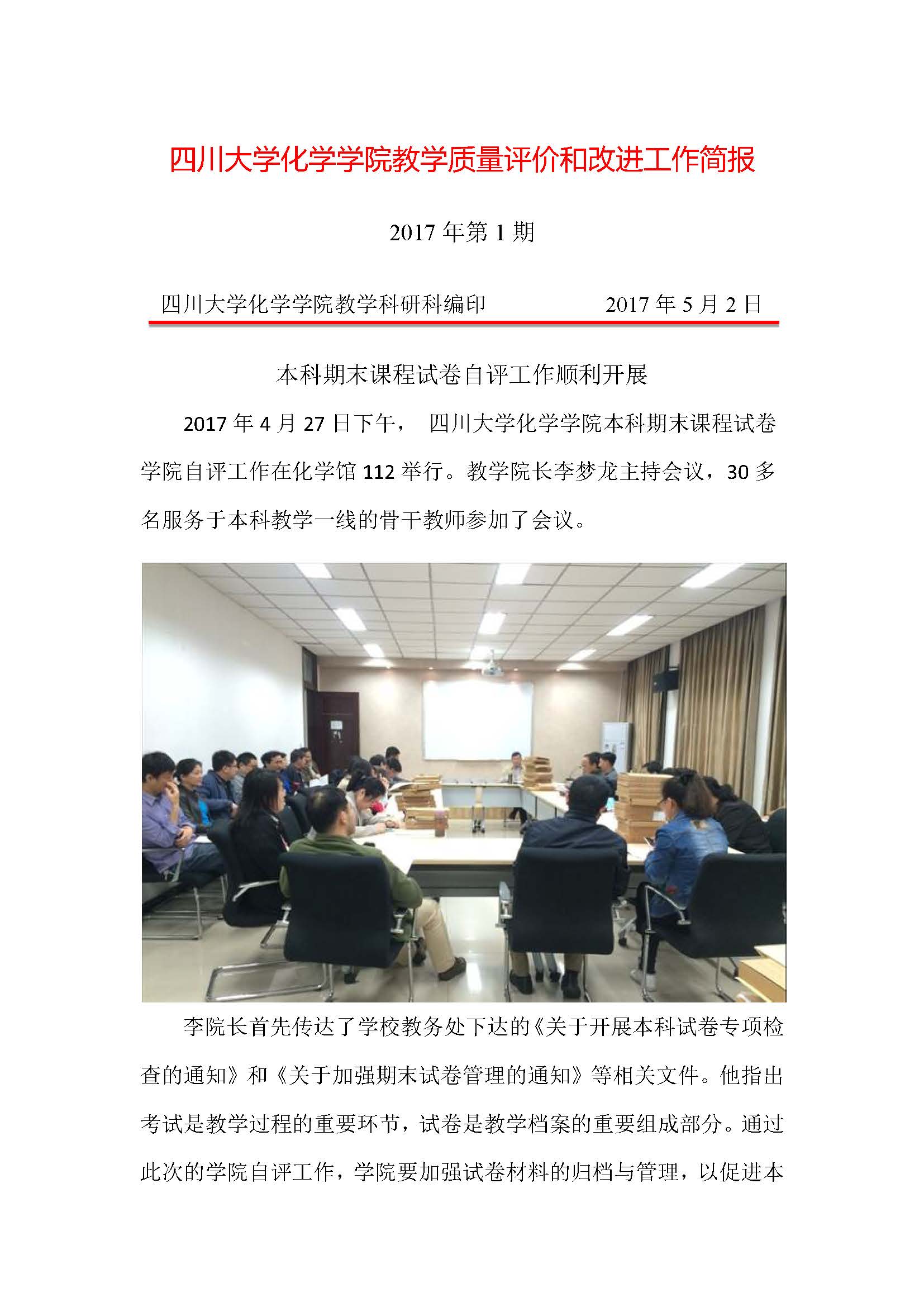 2017年学院教学质量评价和改进工作简报-1