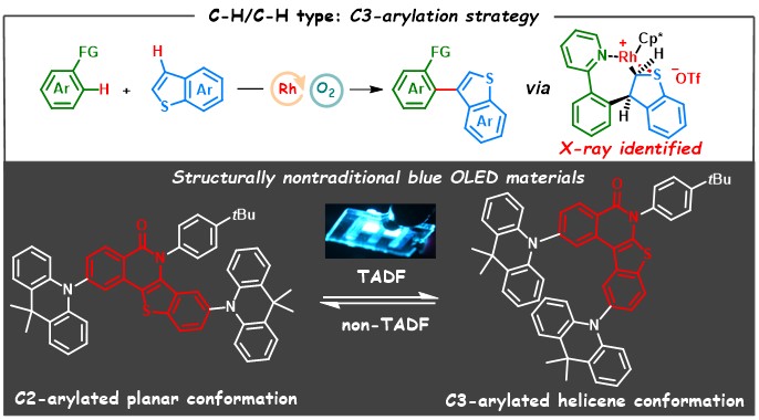 该研究以“Insight into Regioselective Control in Aerobic Oxidative C–H/C–H Coupling for C3-Arylation of Benzothiophenes: Toward Structurally Nontraditional OLED Materials”为题目发表在Journal of the American Chemical Society上,a漫
