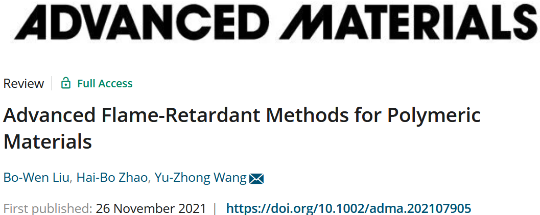 该文以“Advanced Flame-Retardant Methods for Polymeric Materials”为题发表在《Advanced Materials》上。共同第一作者为a漫