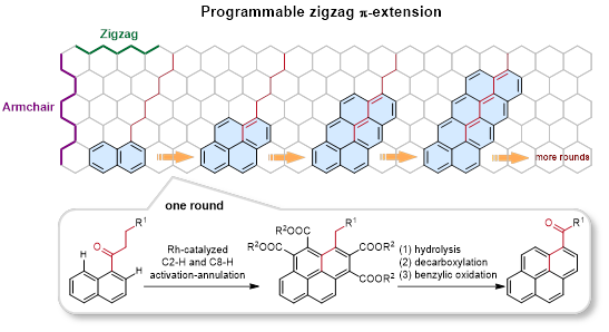 该研究以“Programmable zigzag π-extension toward graphene-like molecules by the stacking of naphthalene blocks”为题目发表在Nature Synthesis上。a漫