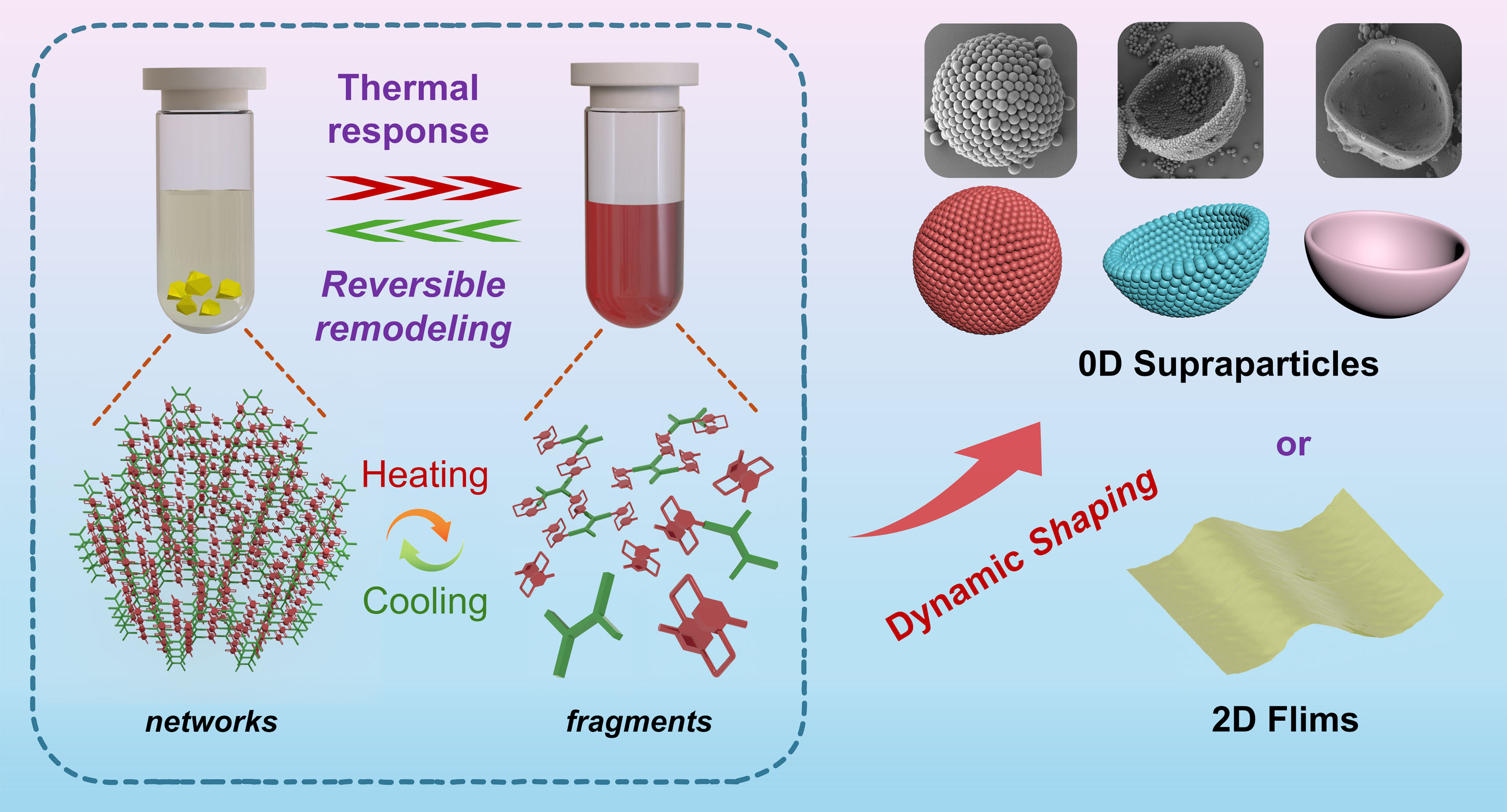 该研究以题为“Dynamic cleavage-remodeling of covalent organic networks into multidimensional superstructures”的论文发表在《Advanced Materials》上。a漫