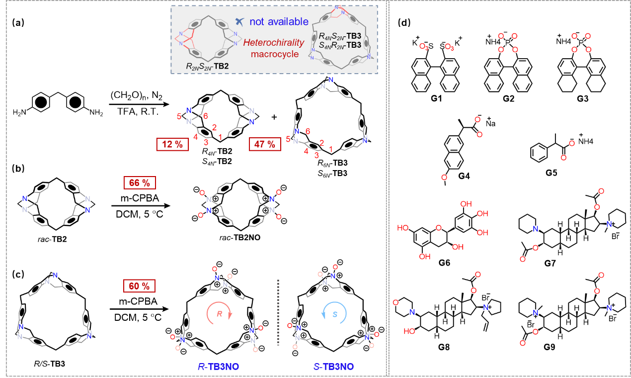 该研究成果以 “Nitrogen-Oxidized Tröger's Base Macrocyclic Arenes: Unprecedented Enantioselective Recognition in Water”为题发表于Angewandte Chemie International Edition期刊上(论文链接://onlinelibrary.wiley.com/doi/10.1002/anie.202416975)。a漫