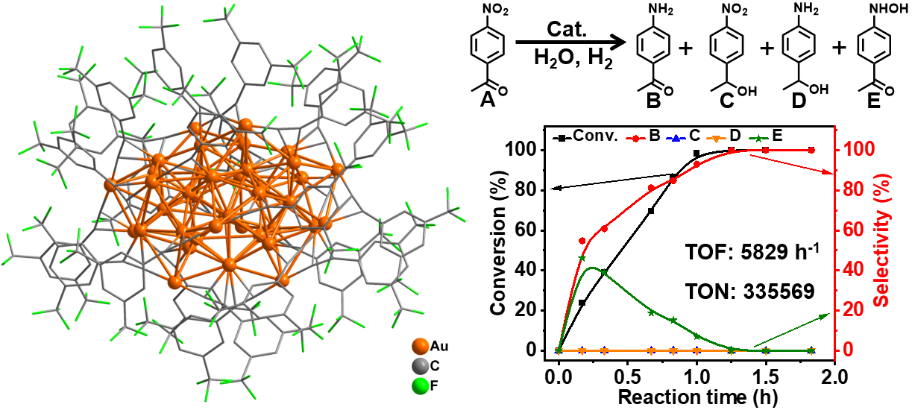 该研究以“Atomically precise gold nanocluster boosting selective hydrogenation of nitroarene by H2 in water”为题发表于Nat. Commun.。a漫
