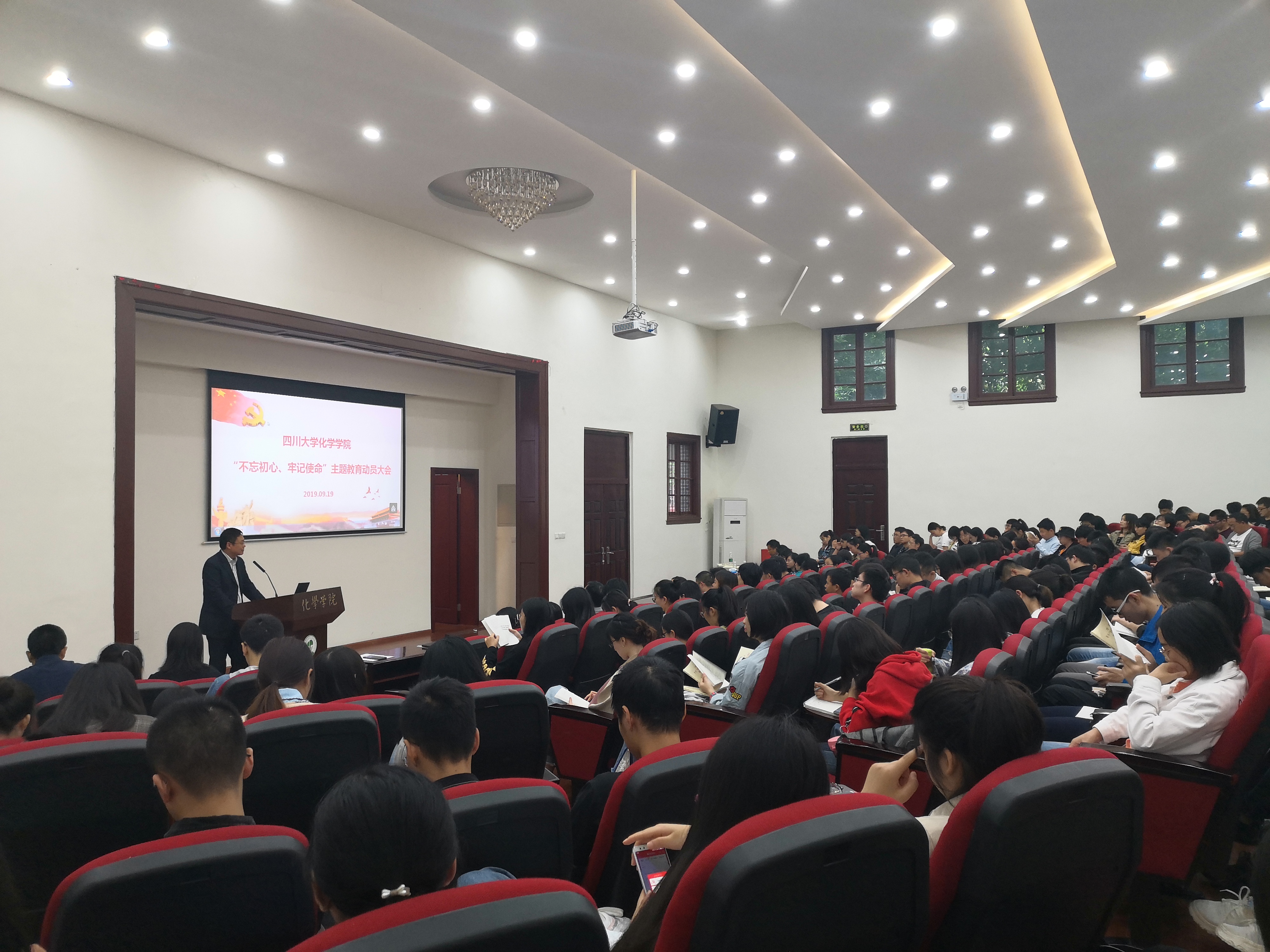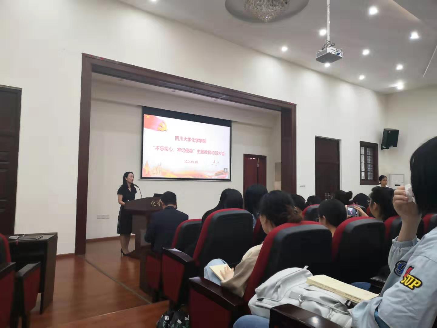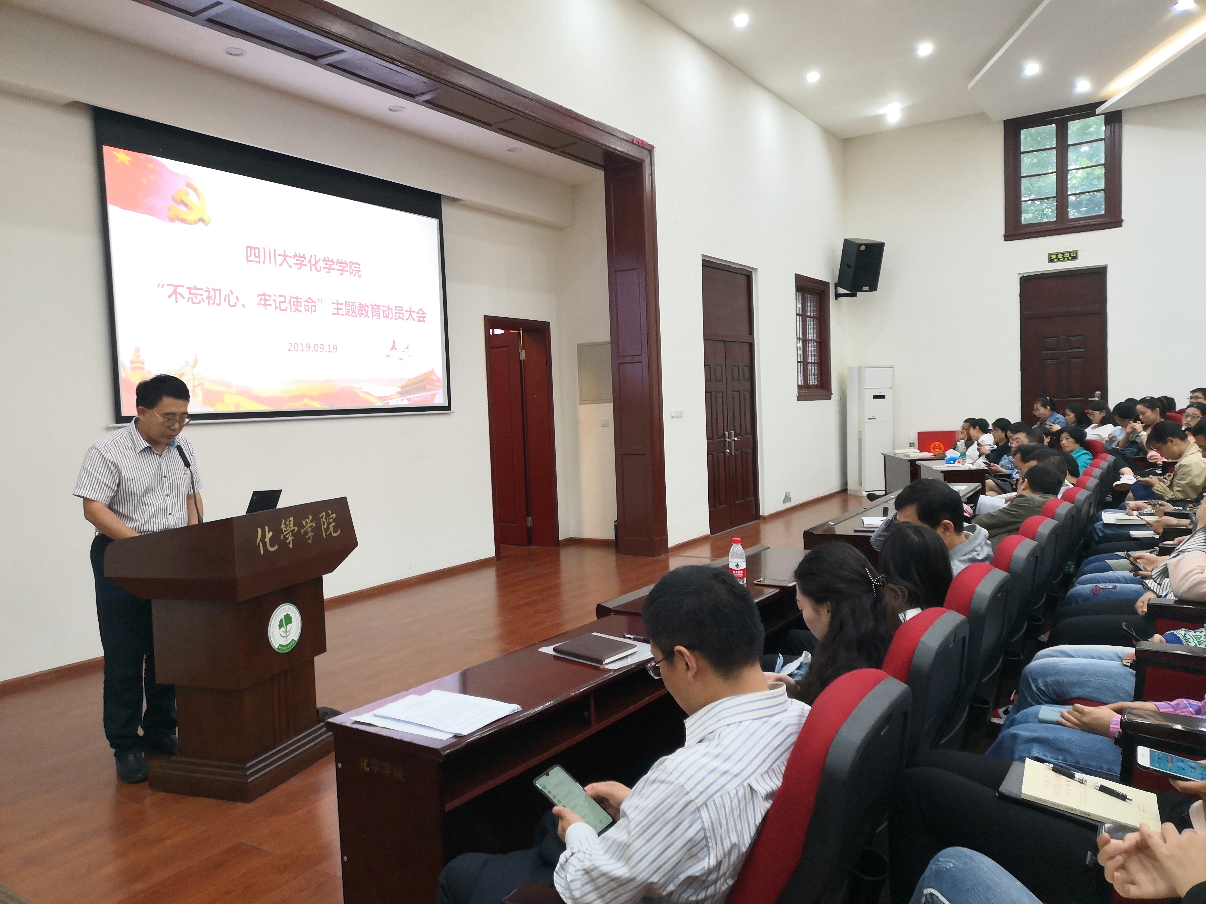 2019年9月19日,a漫 在望江校区化学管321举行了“不忘初心,牢记使命”主题教育动员大会。学校第五指导组组长、研究生院副院长兼研究生工作部部长李栓久、组织部副部长管清贵、“双一流”及质量评估办公室尹怡副处长以及其他小组成员莅临了本次动员大会。