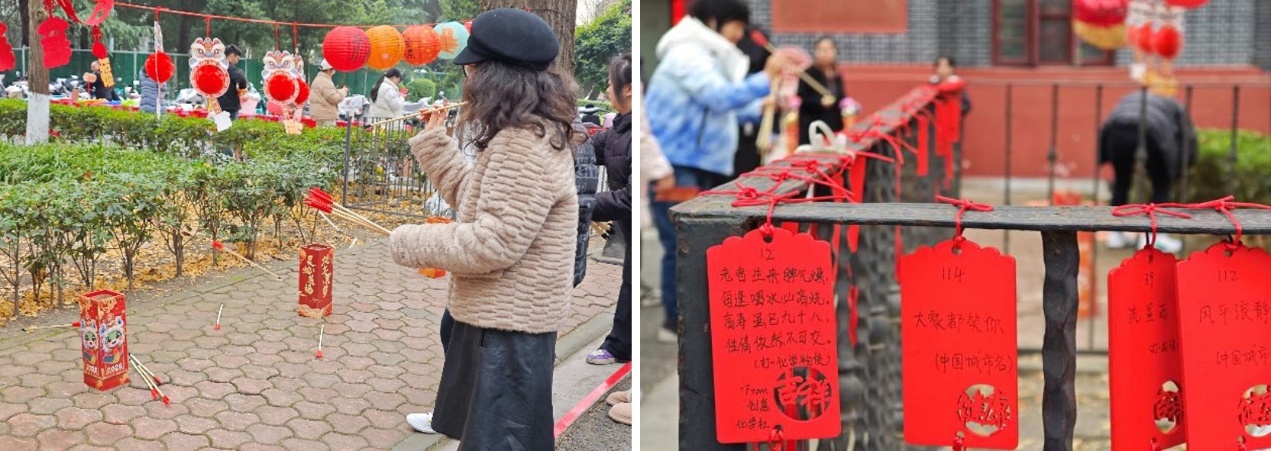 游园会现场热闹非凡,活动项目丰富多彩。平日里严谨的老师们瞬间变身“投壶高手”,手持箭矢,目光专注。每当一支箭矢稳稳落入壶中,周围便响起阵阵喝彩声,投中的老师脸上洋溢着孩童般的喜悦,仿佛找回了青春的活力。欢乐乒乓区更是笑声不断,老师和同学们手持筷子,小心翼翼地夹起乒乓球,那专注的神情和偶尔的失误形成了有趣的画面,让人忍俊不禁。猜灯谜区也是充满了智慧的火花碰撞,老师和同学们或低头沉思,或与同伴热烈讨论。智慧的火花在交流中不断碰撞,当谜底被揭开的那一刻,喜悦之情溢于言表。整个游园会现场,处处洋溢着老师和同学们的欢声笑语,大家尽情享受着这充满趣味与挑战的新春活动,在忙碌的教学科研之余,收获了满满的快乐与温馨。