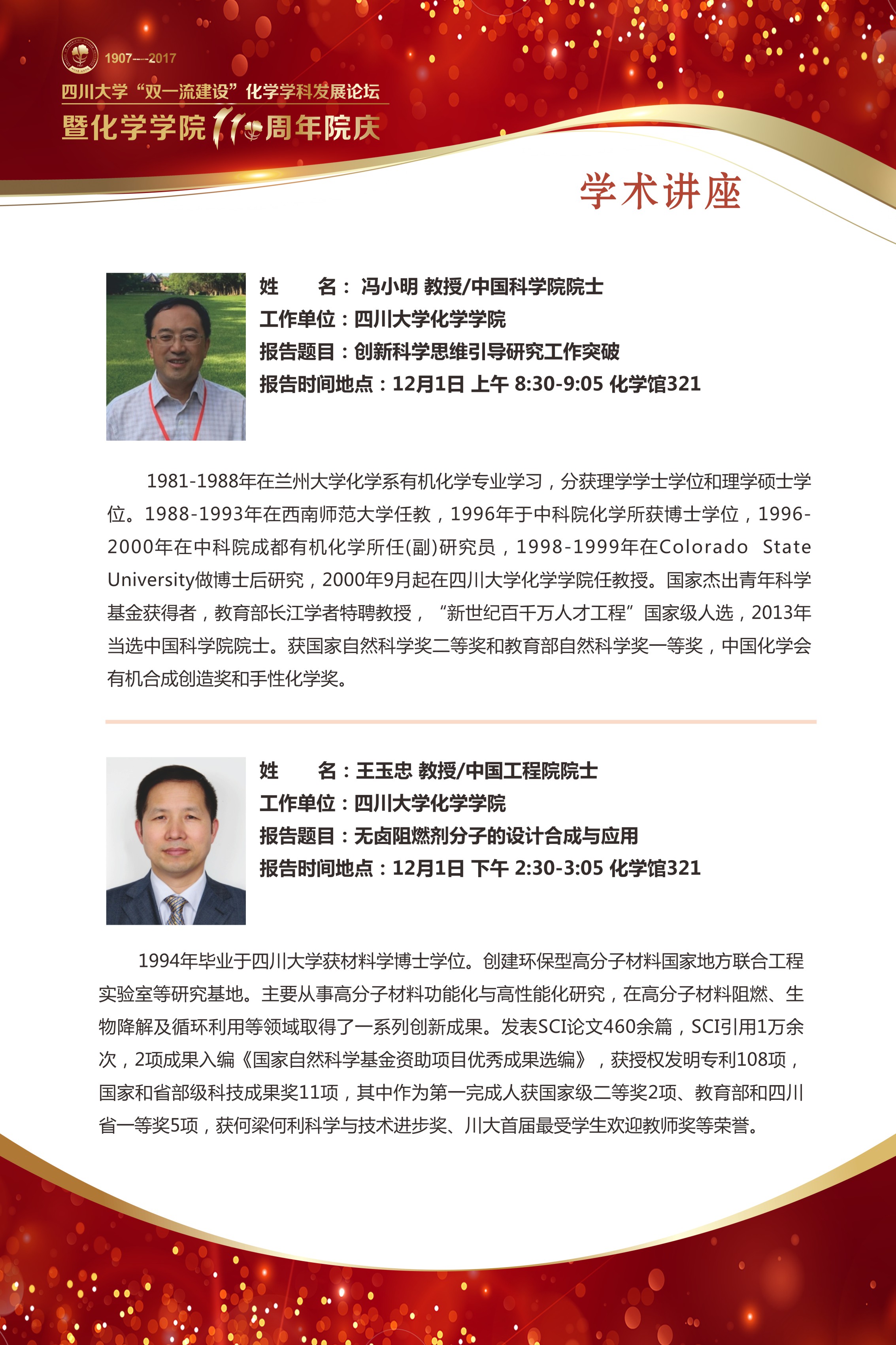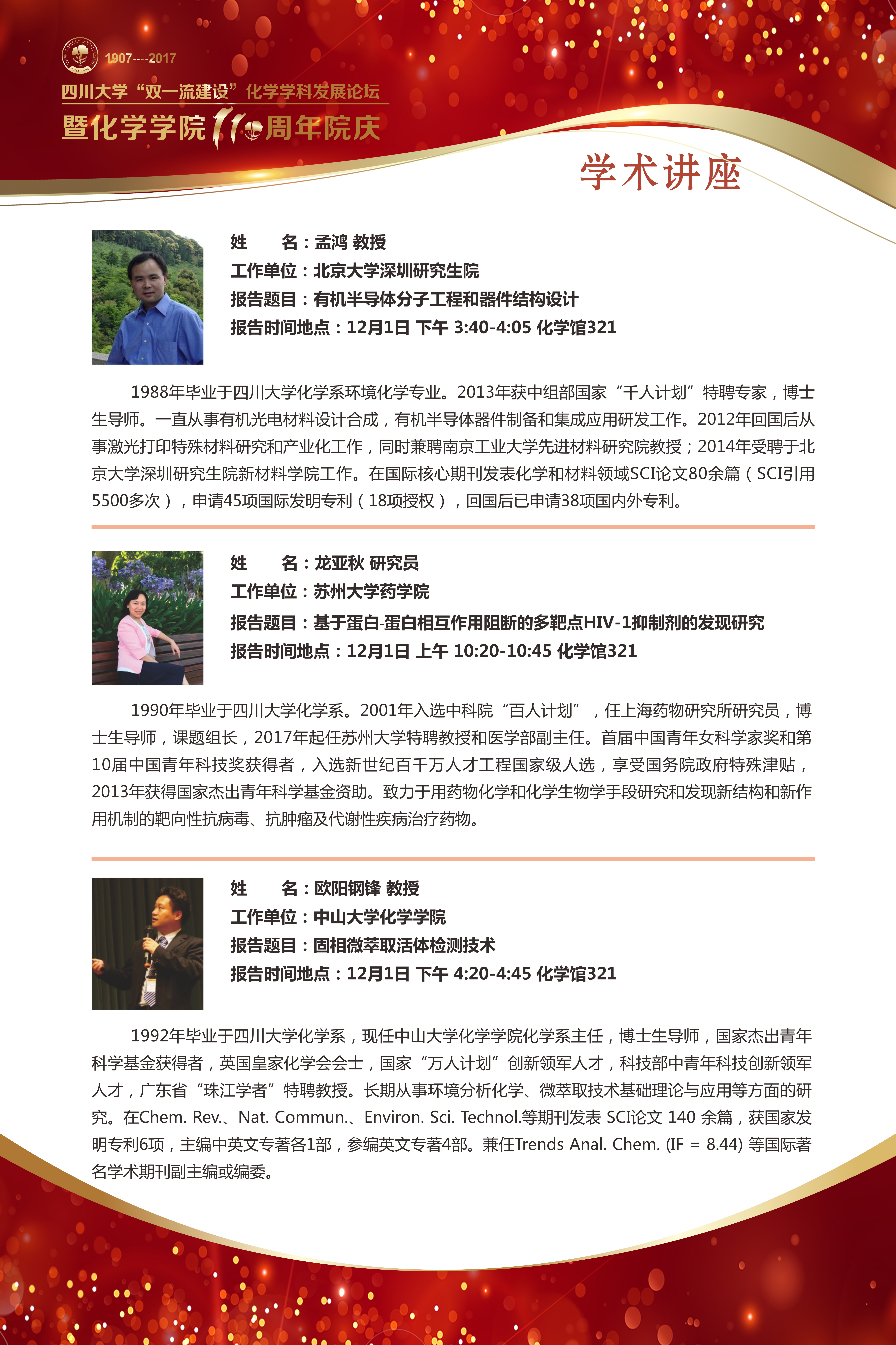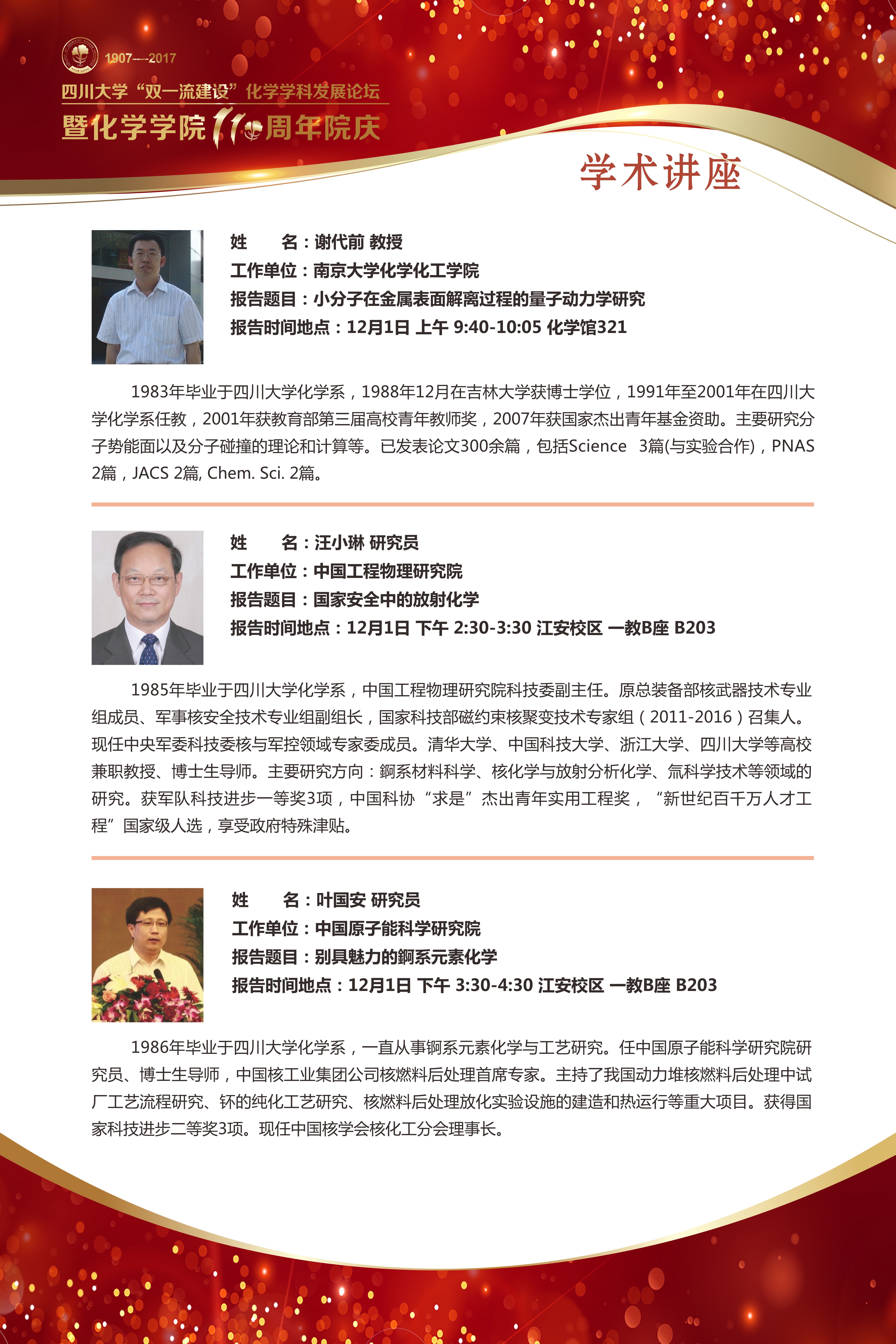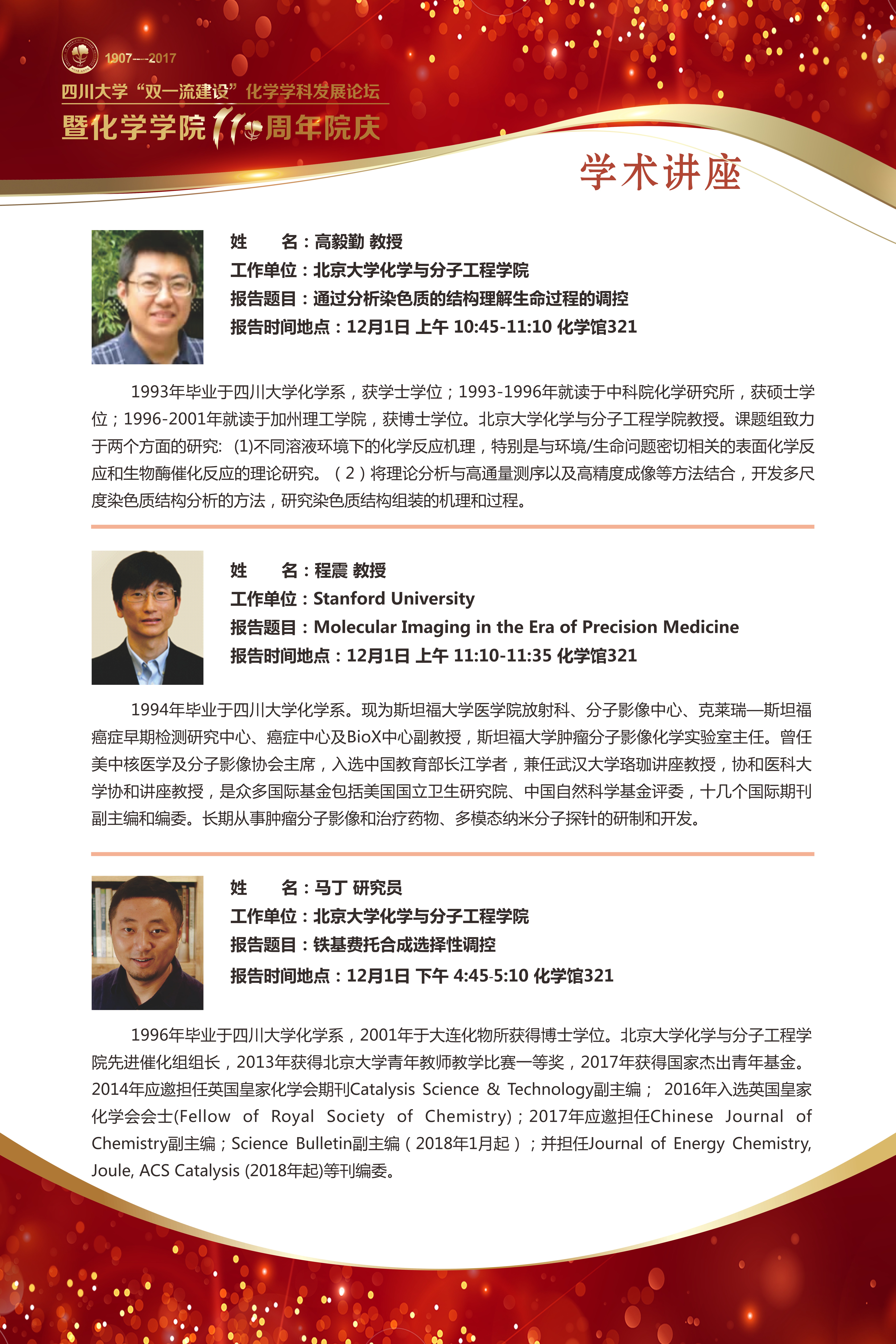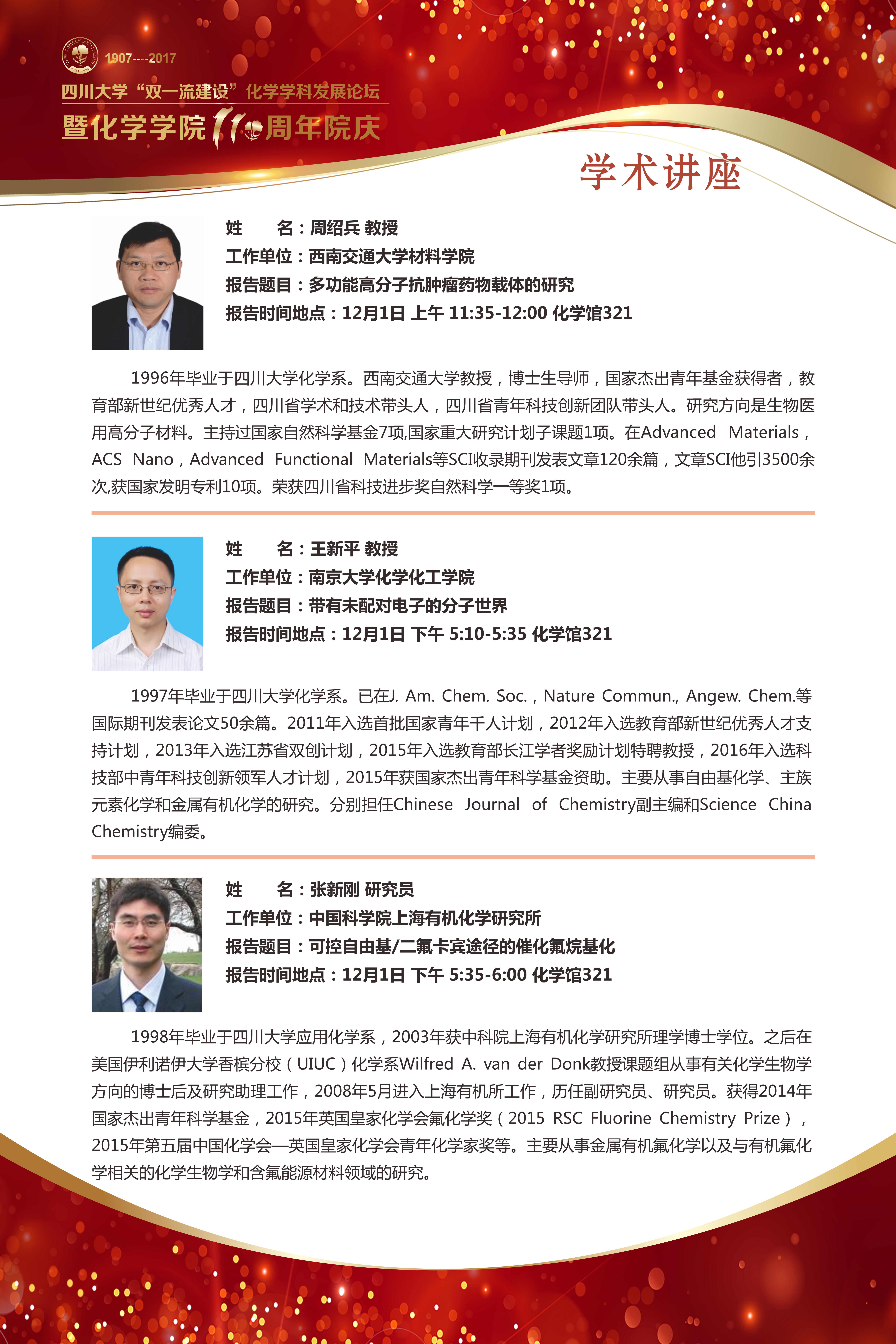 a漫 “双一流建设”化学学科发展论坛暨a漫 110周年院庆公告[2017/11/24]