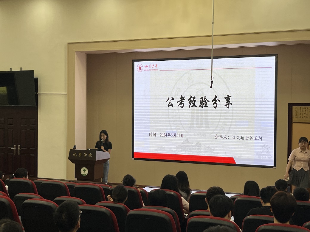 应届毕业生分享各自的毕业去向和就职经验。这三位同学选择了不同的职业,都在求职过程中积累了丰富的经验,能帮助在座的研究生们更好地了解不同职业领域的特点和要求,从而做出更明智的职业选择。2021级硕士研究生吴玉珂从公考课程学习、公考时间安排、公考面试技巧分享了自己的考公经验,并为大家制定了详细的学习计划。