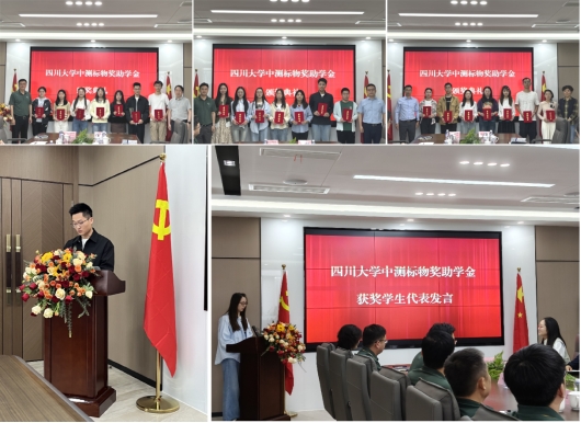 人才培养的支持及中测标物奖助学金的设立表达衷心感谢;对获奖同学致以祝贺,充分肯定了他们的学习成果与突出表现,寄语青年学子要踏踏实实学习、研究;最后祝愿四川中测标物科技有限公司蒸蒸日上,越来越好,希望校企双方在人才培养、技术攻关等方面结出更多硕果,在国家经济主战场、科技主战场始终有我们的声音。