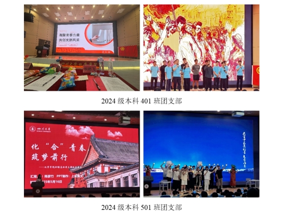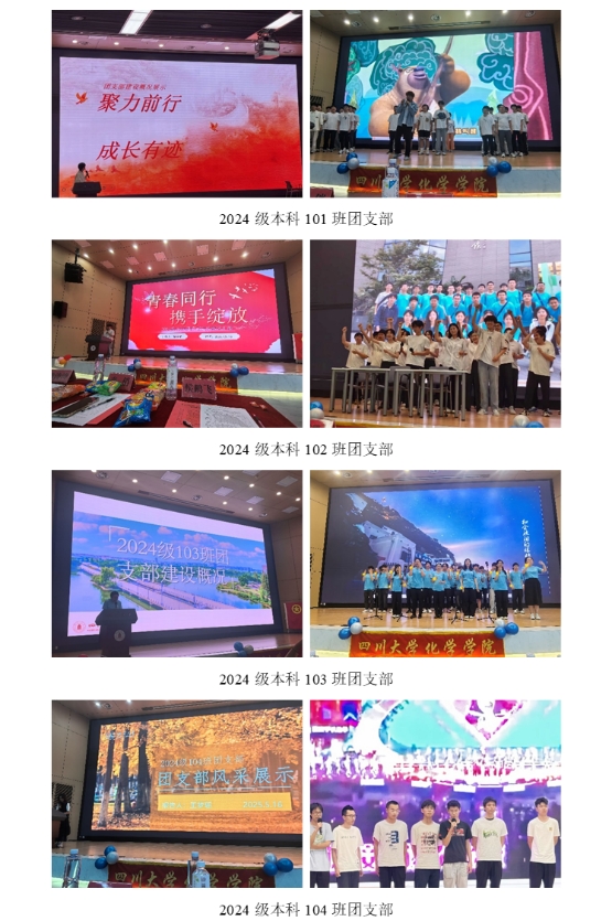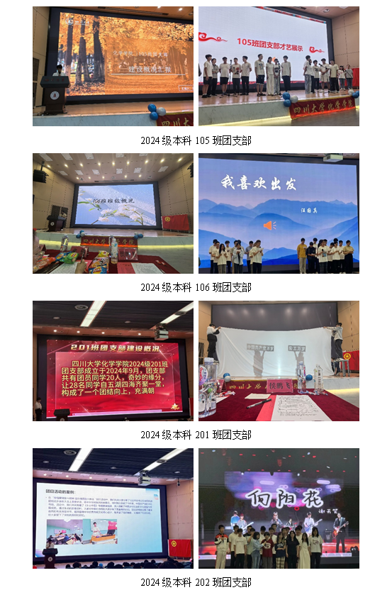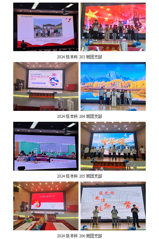 2024级本科共十四个团支部按照抽签顺序分为四组依次进行团支部风采展示,在支部建设展示环节,各支部负责人汇报了本支部日常工作开展以及支部特色活动。在支部风采展示环节,合唱、朗诵及舞台剧等多种形式展示了各支部团结奋进、积极向上的精神风貌。