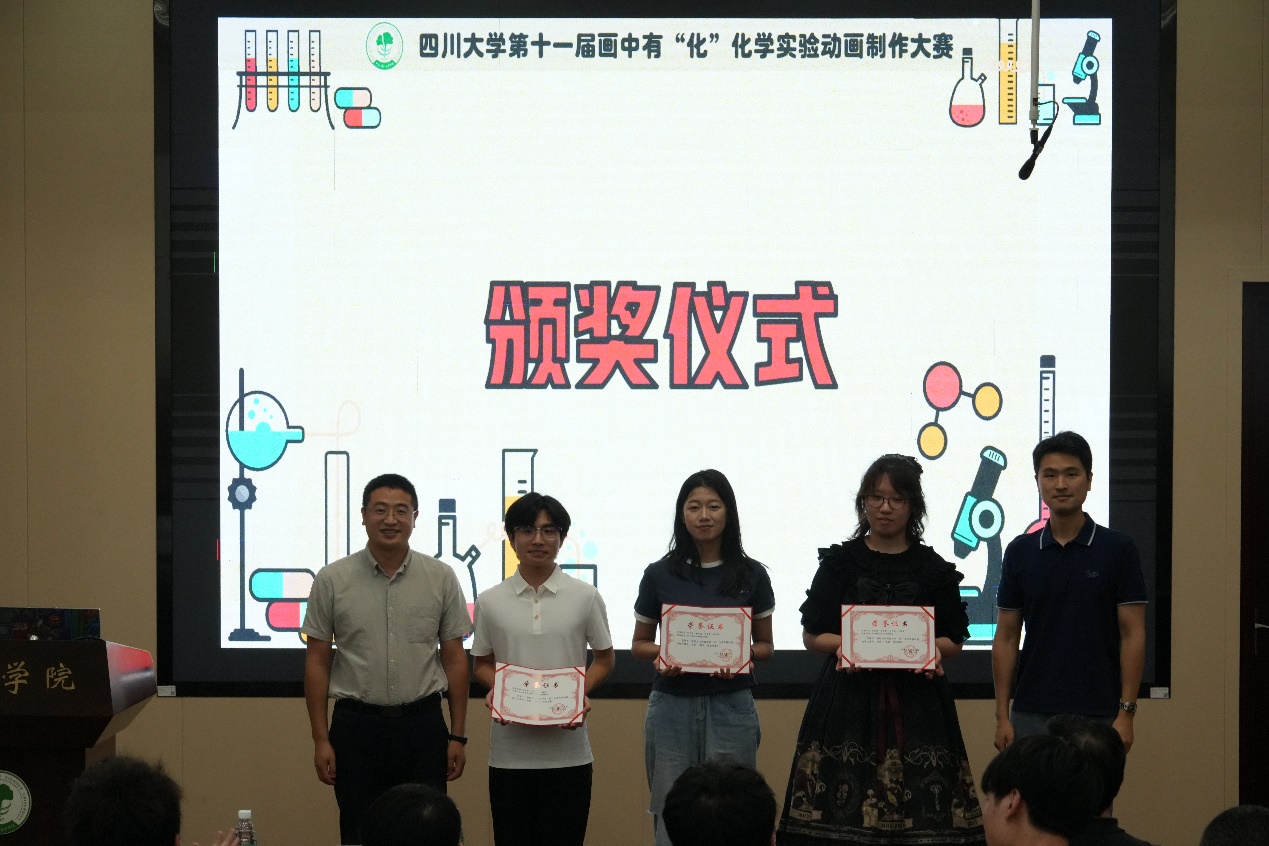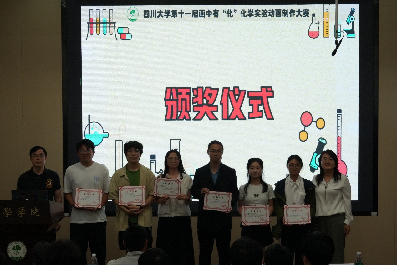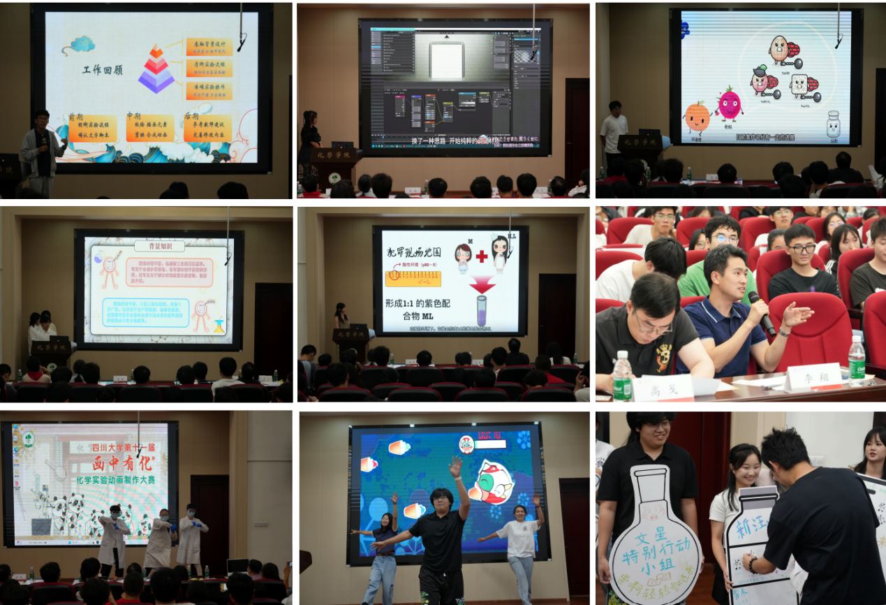 每支队伍展示小组介绍和动画作品后,评委们均会对每支队伍的作品进行实验操作步骤、原理、动画制作、细节处理方面进行专业的点评。随后,各参赛团队依次登台,通过极具个性的才艺展示为自己的作品拉票助威。经过3个小时的精彩展示和比拼碰撞,最终文星特别行动小组队、输了怪领队、摄像机直播队斩获一等奖,还原氢队、劳斯莱4队、乙醇炖腊肉队获得二等奖,一气化三动队、画“化”的baby队、瞌睡香得不得了队、艺化开天队、不会带团队就只能自己干到死队、新汪汪队获得三等奖。