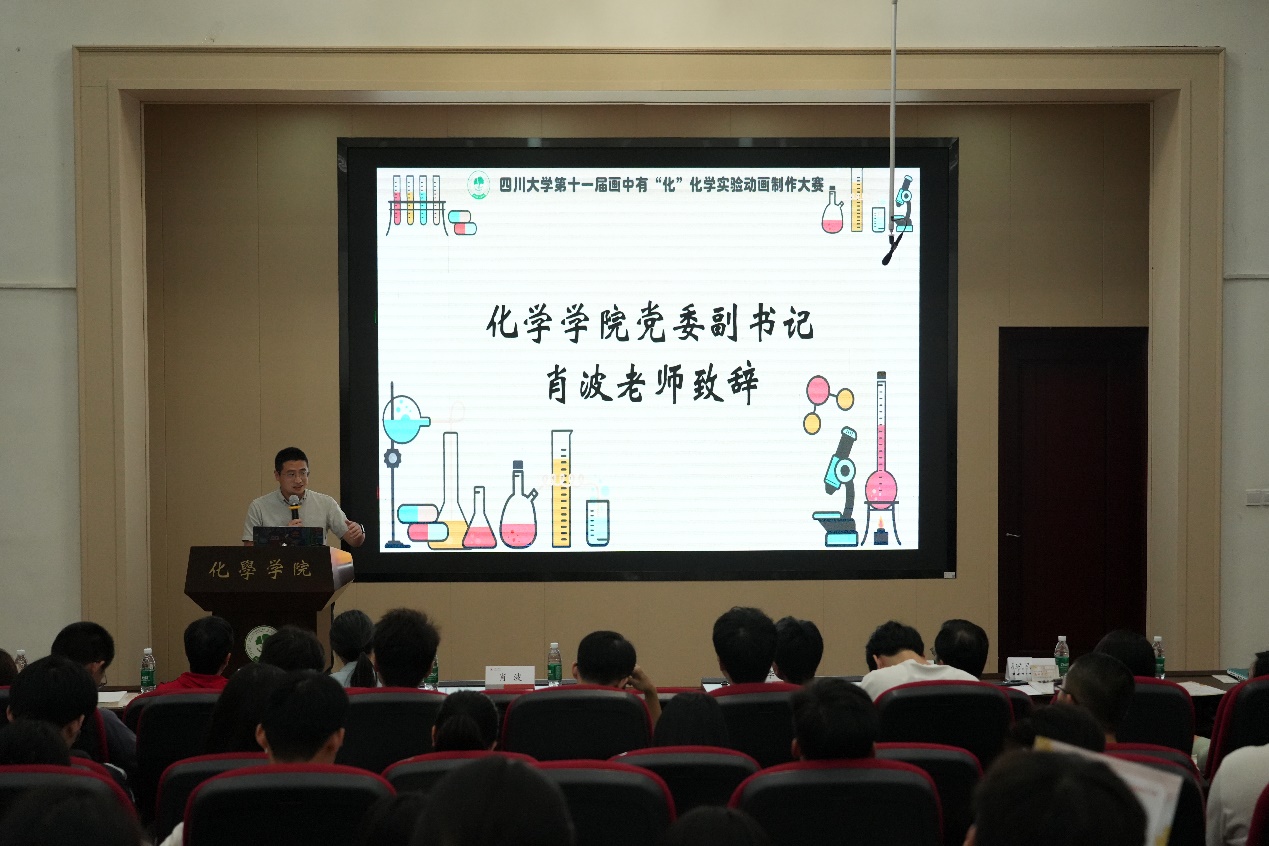 肖波老师在致辞中回顾了化学实验动画制作大赛的诞生和举办经历,他谈到将化学实验与动画进行有机结合,不仅以可视化的方式精准呈现实验原理与操作流程,更通过艺术化表达为科学知识注入了鲜活的趣味性。致辞尾声,肖老师对所有参赛团队寄予深切期许。