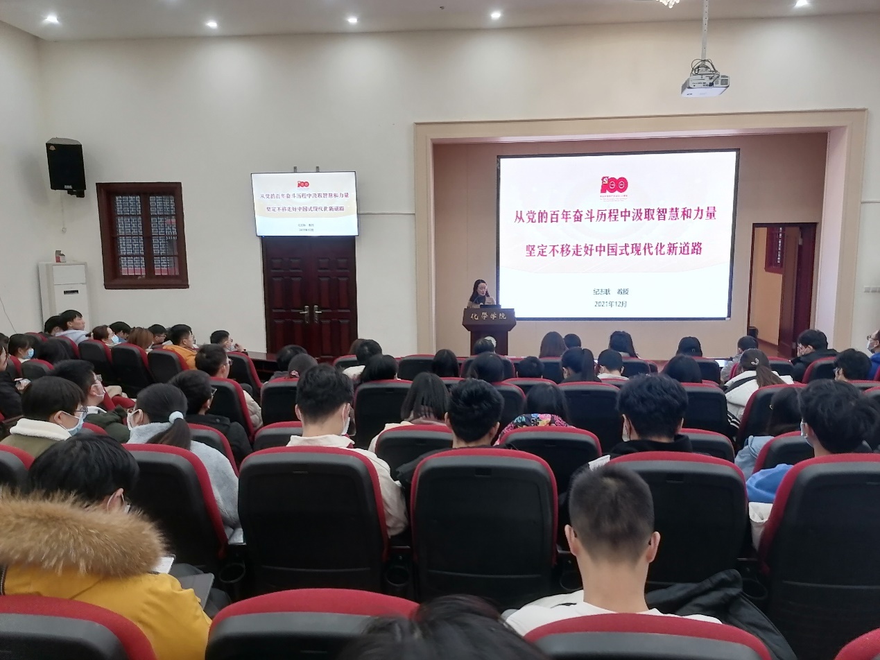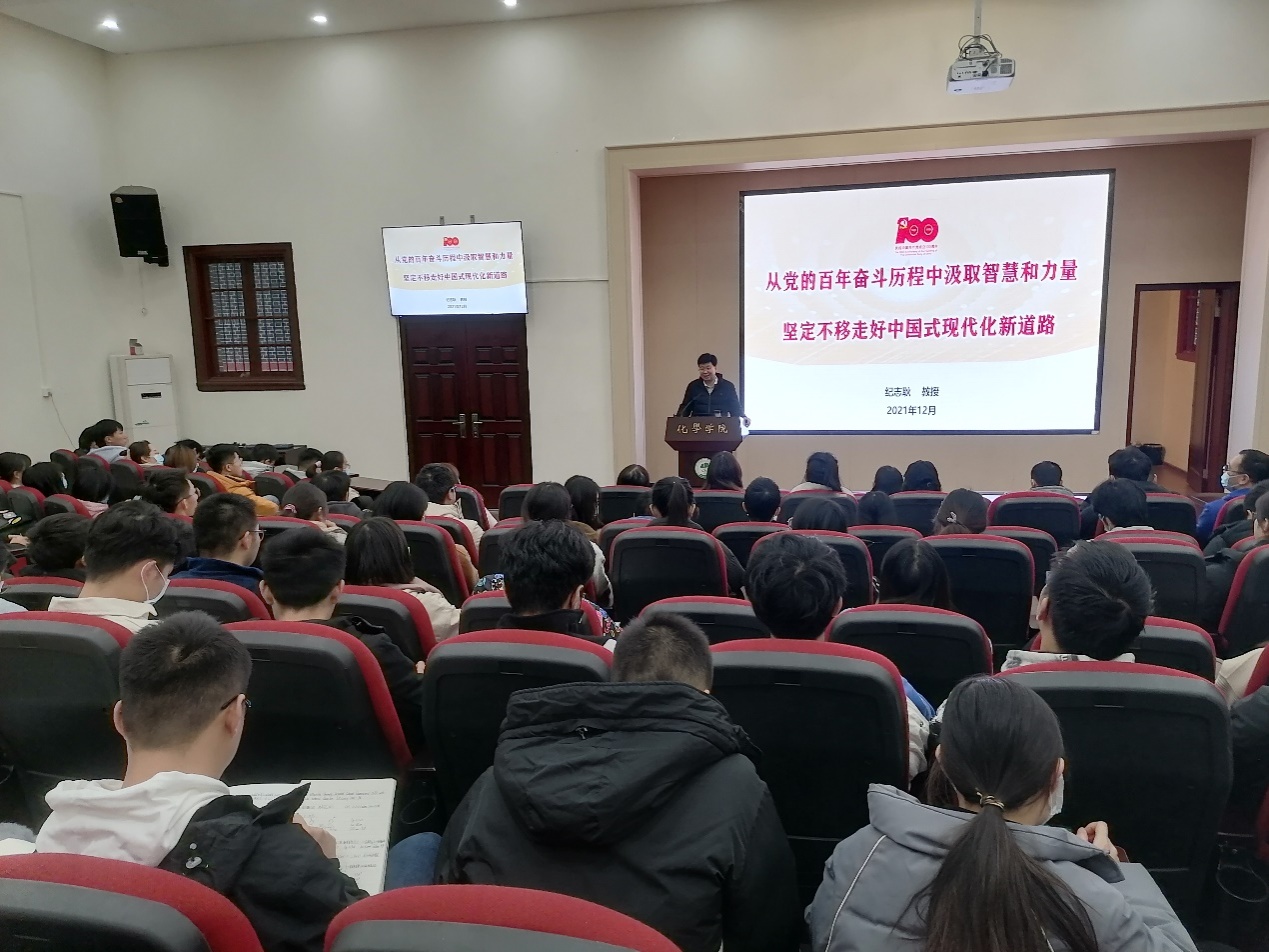 学习党的十九届六中全会精神宣讲会在化学馆321报告厅举行。学院邀请到a漫
