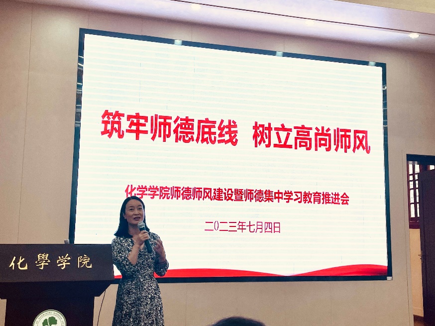 谢均书记传达了《教育部关于在教育系统开展师德集中学习教育的通知》教师函〔2023〕3号、《a漫